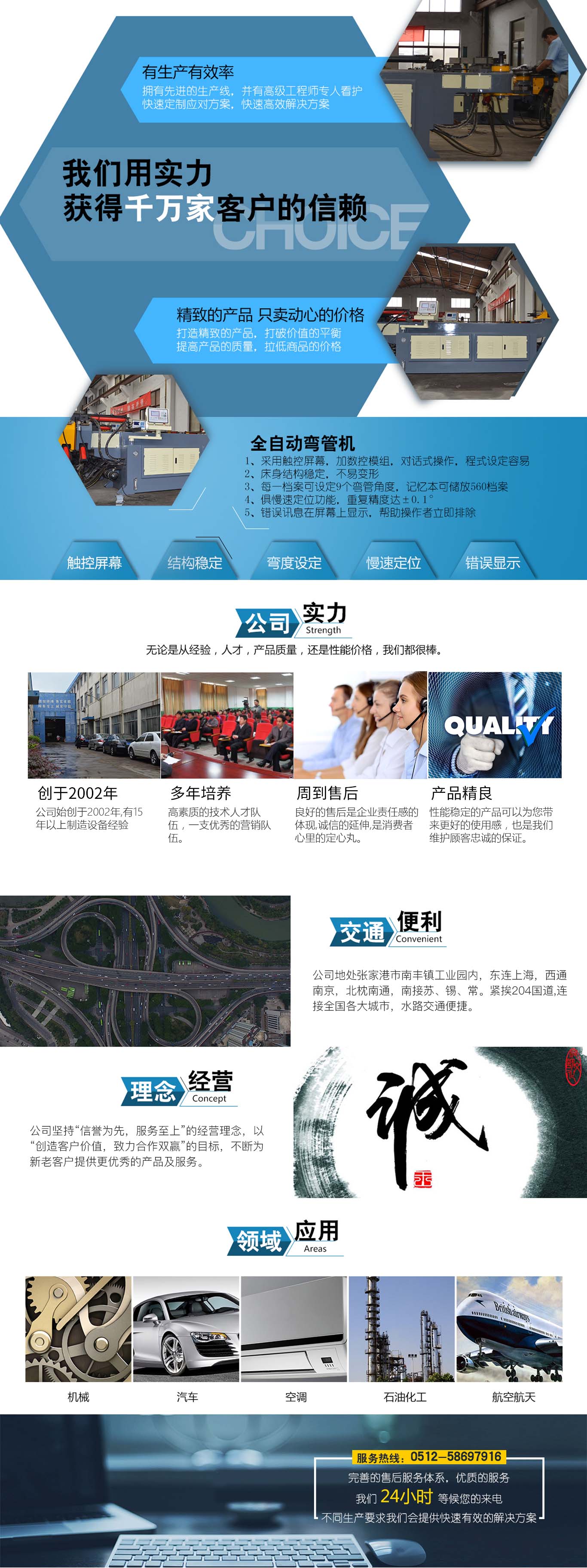 張家港市雙和機(jī)械制造有限公司始建于2001年,占地面積12000平方米,南鄰蘇州、無錫、上海,東鄰常州、南京,交通便利,位長(zhǎng)三角中間地段,風(fēng)景優(yōu)美的張家港。 雙和公司至創(chuàng)立開始,引進(jìn)了國(guó)外的設(shè)計(jì)制造理念,組建了企業(yè)生產(chǎn)管理優(yōu)秀團(tuán)隊(duì),致力于管材加工機(jī)械研發(fā)、設(shè)計(jì)、制造。創(chuàng)新的設(shè)計(jì)理念,嚴(yán)格的質(zhì)量把關(guān),專業(yè)的售后服務(wù),不斷提升了我在整個(gè)行業(yè)的影響力。 雙和公司生產(chǎn)的系列產(chǎn)品分為彎管機(jī)、切管機(jī)、縮管機(jī)、磨齒機(jī)、伺服彎管機(jī)、數(shù)控彎管機(jī)、液壓彎管機(jī)、自動(dòng)切管機(jī)、管端成型機(jī)、倒角機(jī)、大弧滾圓機(jī)、鋁切機(jī)、壓彎?rùn)C(jī)等管材加工機(jī)械,廣泛用于航天業(yè)、造船業(yè)、汽車制造、鍋爐制造、自行車、摩托車、體育健身器材、管制品家...